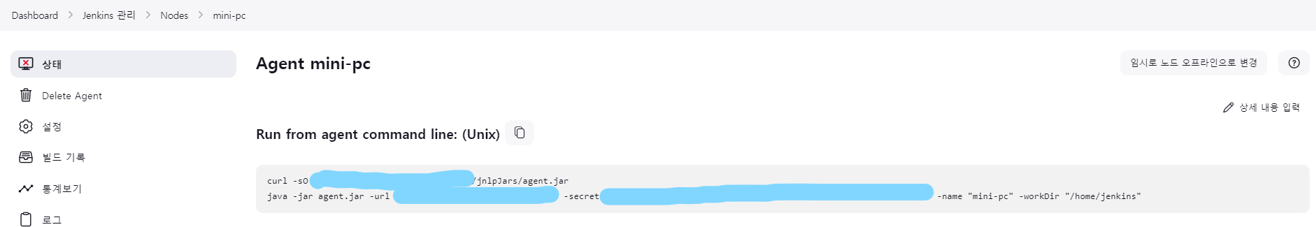 만약 x표시가 난다면 젠킨스 에이전트를 실행하는 쪽에서 로그를 확인해보자