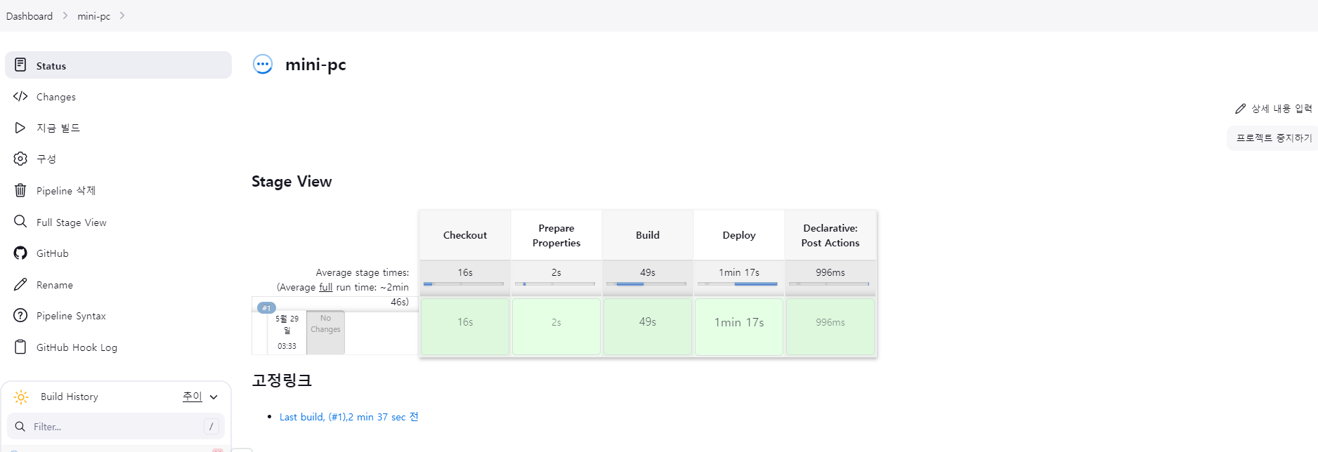 기존에 오라클 인스턴스에 배포하던 스크립트를 그대로 라벨만 변경하여 테스트용으로 홈서버에 배포해봤고 성공적으로 배포가 되었다.