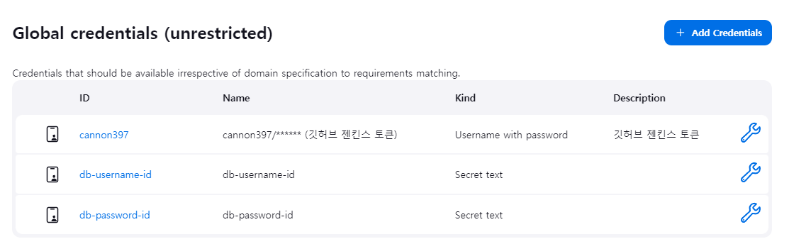 string(credentialsId: 'db-username-id', variable: 'DB_USERNAME'),