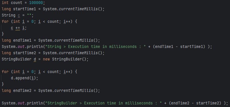 Stirng 연산과 StringBuilder 연산의 실행시간 차이
